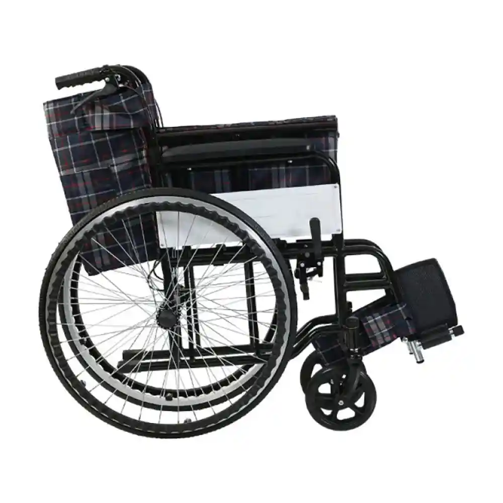 Ekonomik Katlanır Manuel Tekerlekli Sandalye, hem iç hem dış mekan kullanımına uygun, temel hareket desteği sunan pratik bir modeldir. Çelik gövdesi katlanabilir yapıda olup taşıma ve depolamada kolaylık sağlar. Sabit kolçak ve ayaklıkları ile stabil bir oturma pozisyonu sunar. Hasta, yaşlı ve engelli bireylerin günlük kullanımına uygundur.